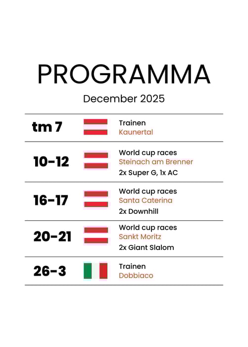 Het winterseizoen 2024/2025 is nog in volle gang. Hoe zagen deze weken voor Barbara eruit? Bekijk het hier. Of blijf op de hoogte via haar Instagram account.